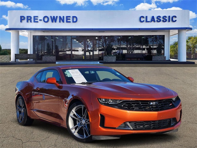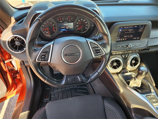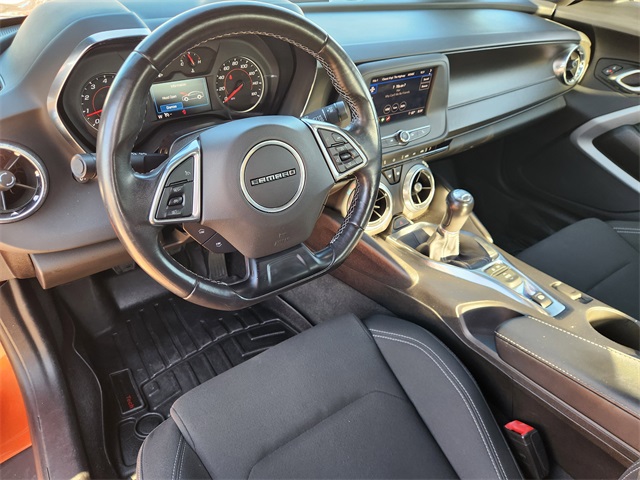 Clean CARFAX. Vivid Orange Metallic 2022 Chevrolet Camaro 1LT RWD 6-Speed Manual 2.0L Turbocharged LOCAL TRADE, CLEAN CARFAX, NON SMOKER, KEYLESS ENTRY, REMOTE START, APPLE CARPLAY, ANDROID AUTO, SIRIUS XM RADIO, AM/FM/HD RADIO, BLUETOOTH HANDS FREE CALLING, FRONT USB CHARGING PORTS, MP3 IPOD COMPATIBLE, AUTO HEADLIGHTS, DAYTIME RUNNING LIGHTS, BLIND SPOT WARNING SYSTEM, REAR TRAFFIC ALERT, LANE DEPARTURE WARNING SYSTEM, POWER ADJUSTABLE DRIVERS SEAT, HEATED SEATS, LEATHER INTERIOR.
