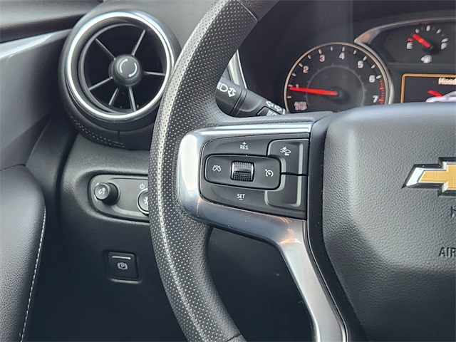CARFAX One-Owner. Clean CARFAX. Black 2023 Chevrolet Blazer LT FWD 9-Speed Automatic with Overdrive 2.0L Turbocharged LOCAL TRADE, CARFAX 1 OWNER, CLEAN CARFAX, NON SMOKER, KEYLESS ENTRY, REMOTE START, APPLE CARPLAY, ANDROID AUTO, SIRIUS XM RADIO, ON STAR, AM/FM/HD RADIO, BLUETOOTH HANDS FREE CALLING, FRONT USB CHARGING PORTS, MP3 IPOD COMPATIBLE, AUTO HEADLIGHTS, DAYTIME RUNNING LIGHTS, LANE DEPARTURE WARNING SYSTEM, Adaptive Cruise Control, Black Roof-Mounted Side Rails, Convenience Package, D