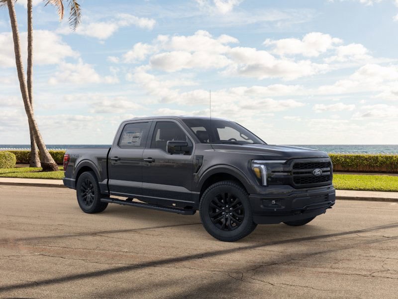 This 2025 Ford F-150 Lariat in Black comes with the following features: 5.0L V8 10-Speed Automatic 4WD Bed Utility Package (4 Pickup Box Tie-Down Plates, LED Box Lighting, Power Tailgate, and Pro Access Tailgate), Equipment Group 501A Mid (6" Angular Bright Anodized Step Bar, Illuminated Driver & Passenger Visors, Power-Sliding Rear Window, and Wheels: 20" Chrome-Like PVD), FX4 Off-Road Package (4x4 FX4 Off-Road Bodys