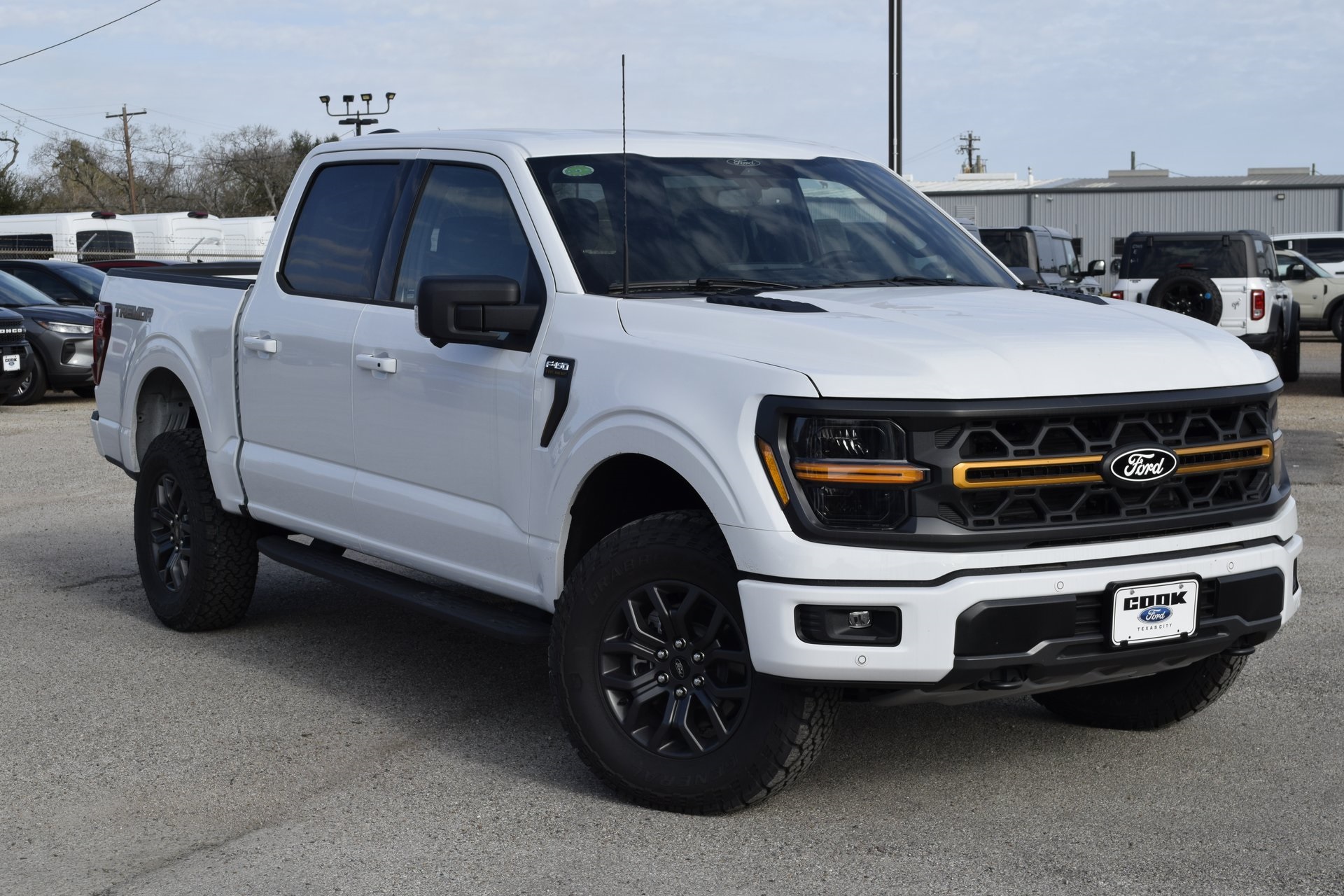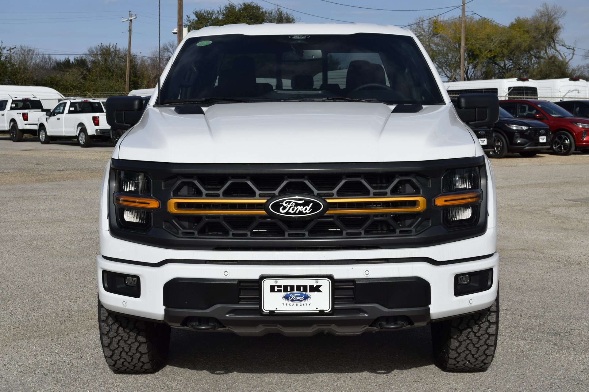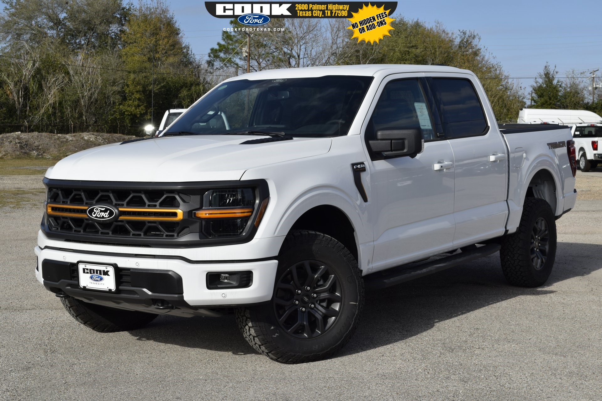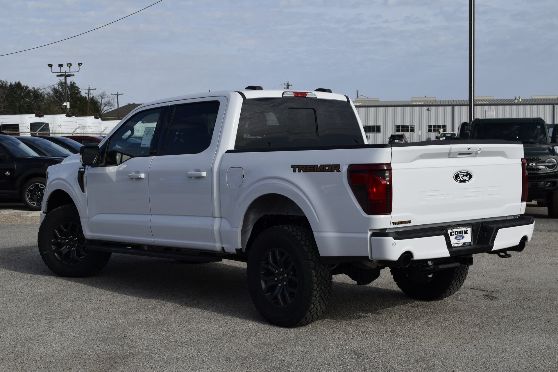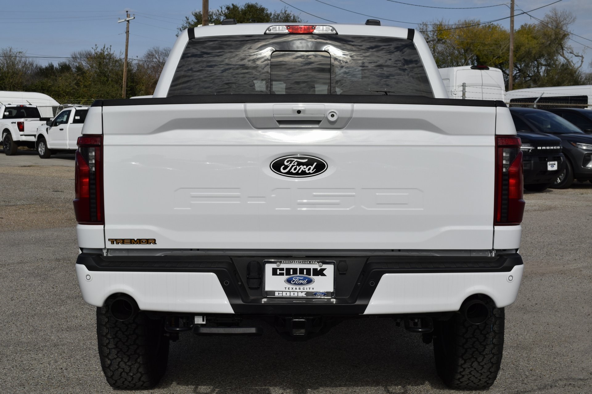 This 2025 Ford F-150 Tremor in Oxford White comes with the following features: 5.0L V8 10-Speed Automatic 4WD Equipment Group 401A Standard, GVWR: 7,100 lbs Payload Package, Mobile Office Package (Console Worksurface, Partitioned Lockable Rear Storage, and Wireless Charging), 4-Wheel Disc Brakes, 8 Speakers, ABS brakes, Adjustable pedals, Air Conditioning, Alloy wheels, AM/FM radi