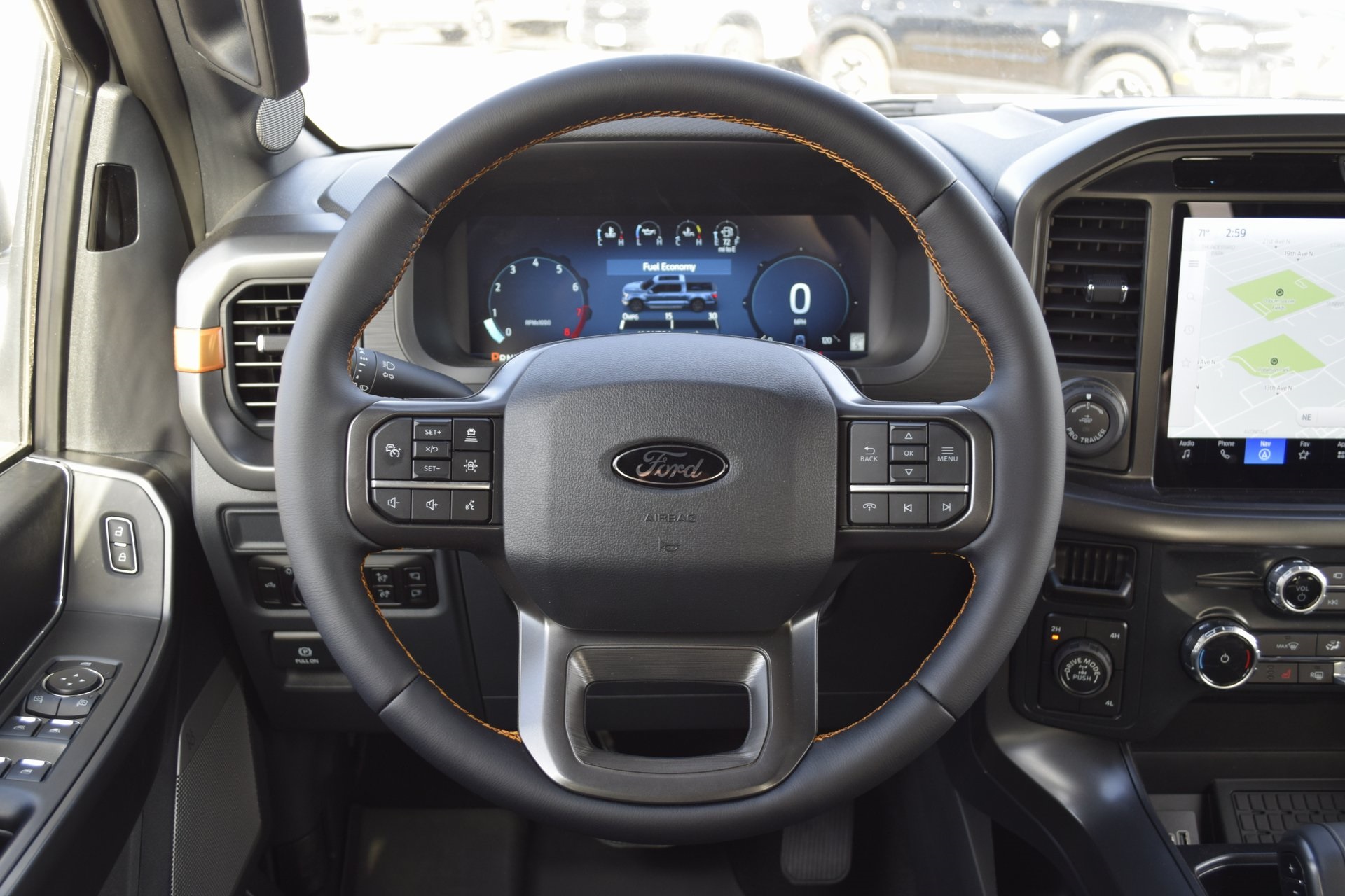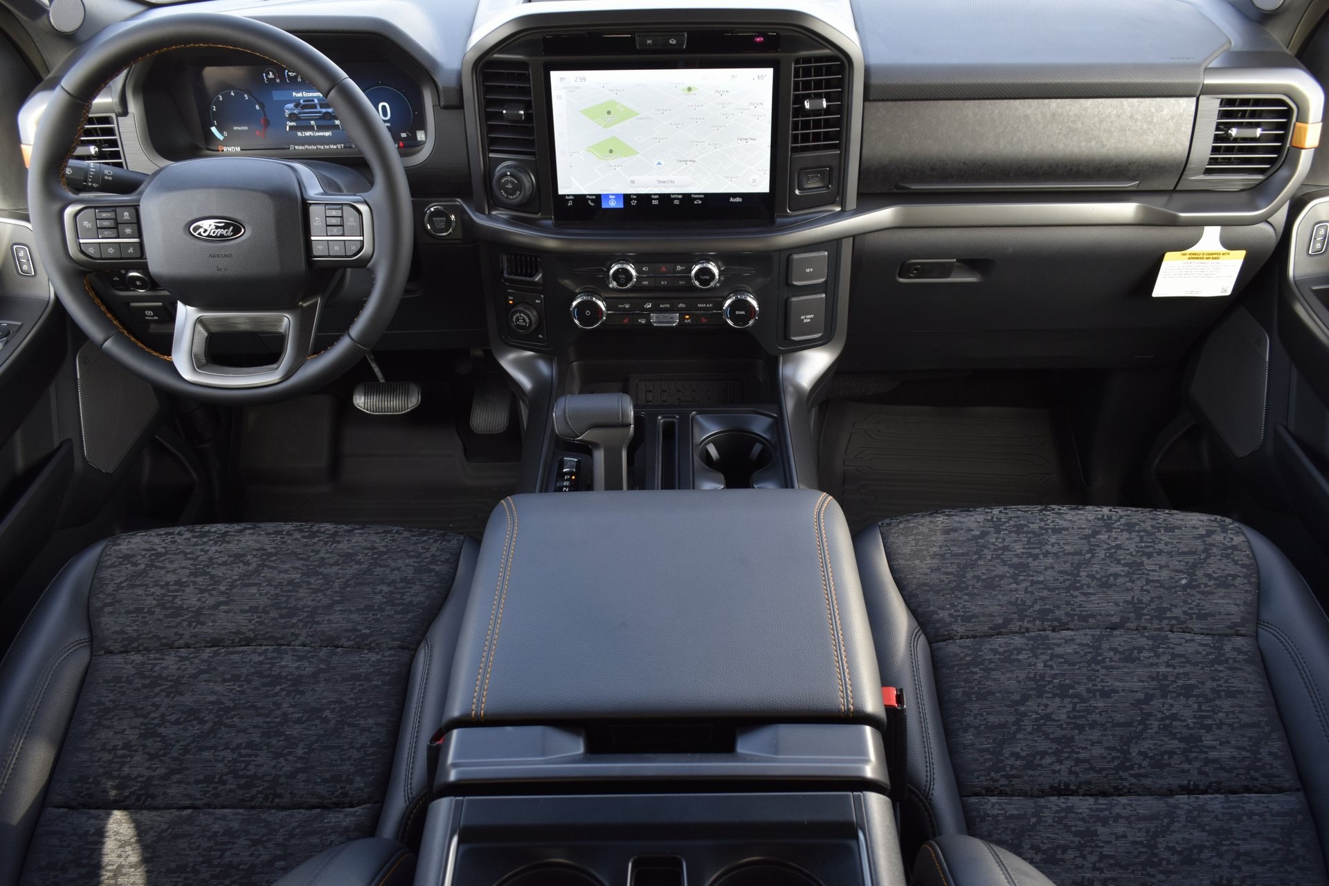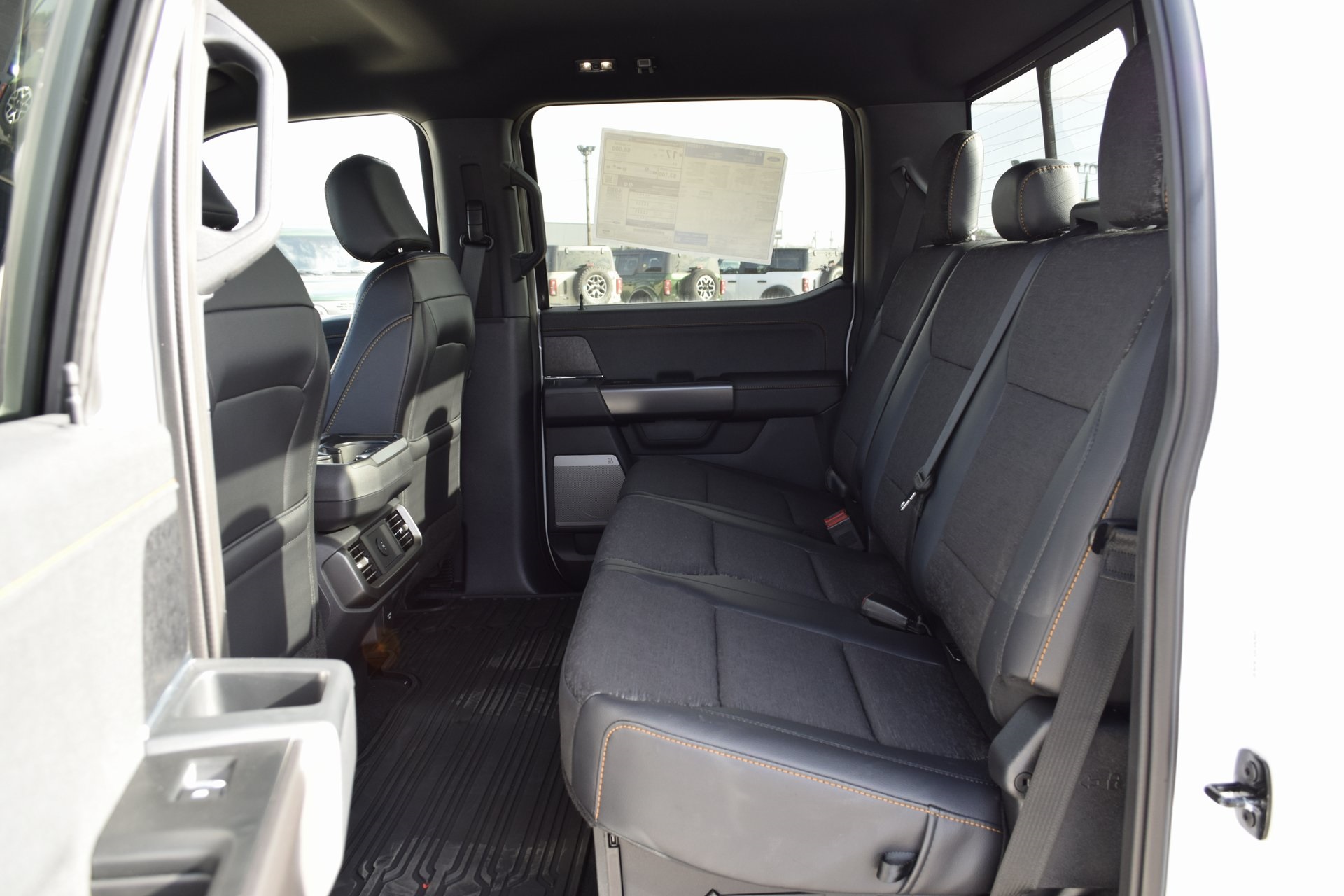 : SiriusXM with 360L, Auto High-beam Headlights, Auto-dimming door mirrors, Auto-dimming Rear-View mirror, Automatic temperature control, Brake assist, Bumpers: body-color, Compass, Delay-off headlights, Driver door bin, Driver vanity mirror, Dual front impact airbags, Dual front side impact airbags, Electronic Locking w/3.73 Axle Ratio, Electronic Stability Control, Emergency communication system: SYNC 4 911 Assist, Front anti-roll bar, Front Bucket Seats, Front Center Armrest, Front dual zone A/C, Front fog lights, Front License Plate Bracket, Front reading lights, Front wheel independent suspension, Fully automatic headlights, Heated door mirrors, Heated Front Seats, Illuminated entry, Internet access capable: FordPass Connect 5G, Low tire pressure warning, Navigation system: Connected Navigation, Occupant sensing airbag, Outside temperature display, Overhead airbag, Overhead console, Panic alarm, Passenger door bin, Passenger vanity mirror, Power door mirrors, Power driver seat, Power passenger seat, Power steering, Power windows, Radio data system, Radio: B&O Sound System by Bang & Olufsen, Rear reading lights, Rear step bumper, Rear window defroster, Remote keyless entry, Retractable Rear Center Step, Security system, Speed control, Split folding rear seat, Steering wheel mounted audio controls, SYNC 4 w/Enhanced Voice Recognition, Tachometer, Telescoping steering wheel, Tilt steering wheel, Traction control, Tray Style Floor Liner w/Carpet Mats, Trip computer, Turn signal indicator mirrors, Unique Sport Cloth 40/Console/40 Power Front Seat, Variably intermittent wipers, Voltmeter, and Wheels: 18" Alloy w/Dark Matte Finish. Rebates subject to geographical qualification. Price includes: *Manufacturer’s Rebates shown above are subject to residency restrictions. Any customer not meeting the residency restriction will receive a dealer discount in the same amount of the manufacturer rebate.$2000 - Retail Customer Cash. Exp. 03/31/2026