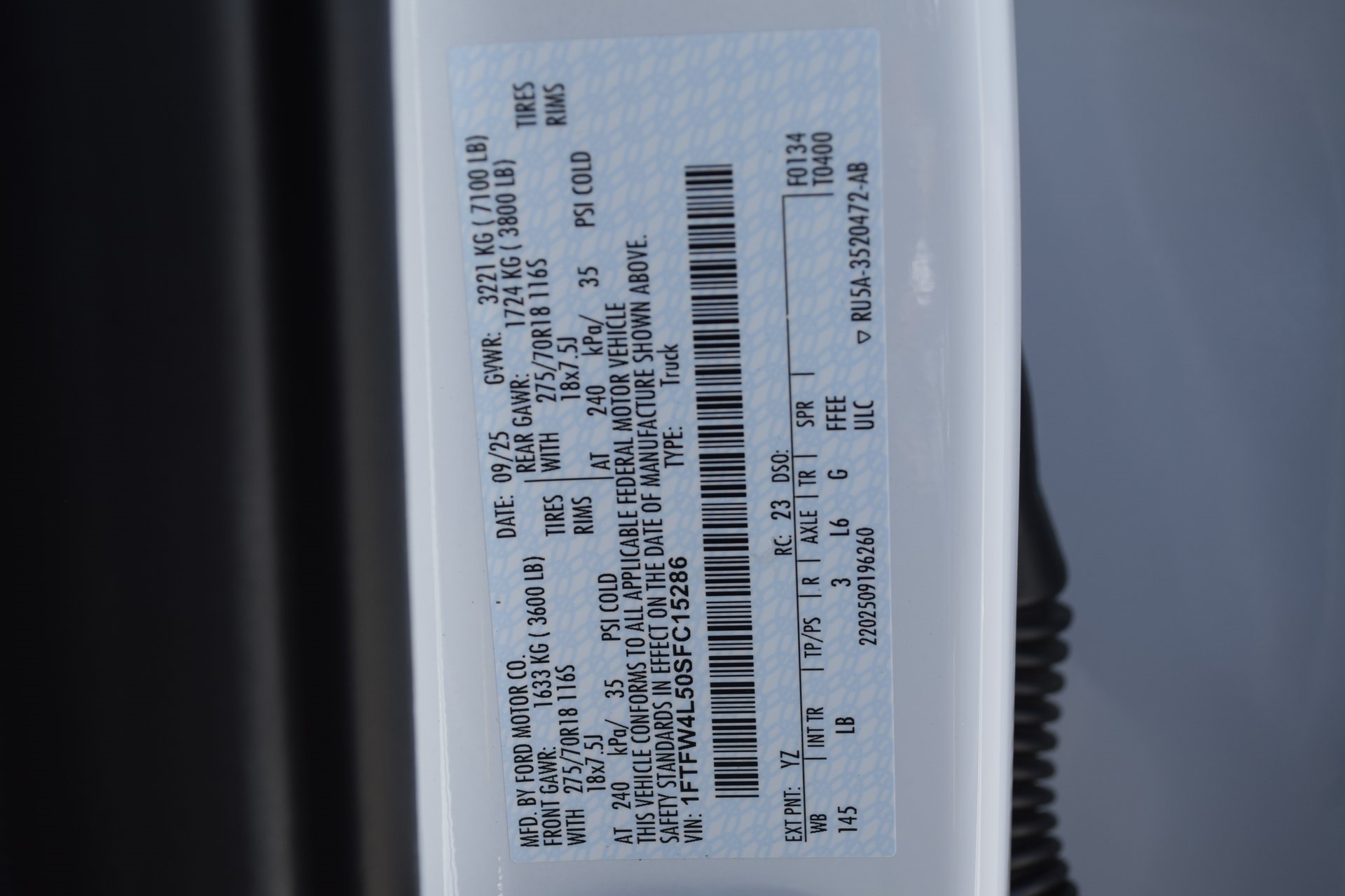 1FTFW4L50SFC15286Stock #