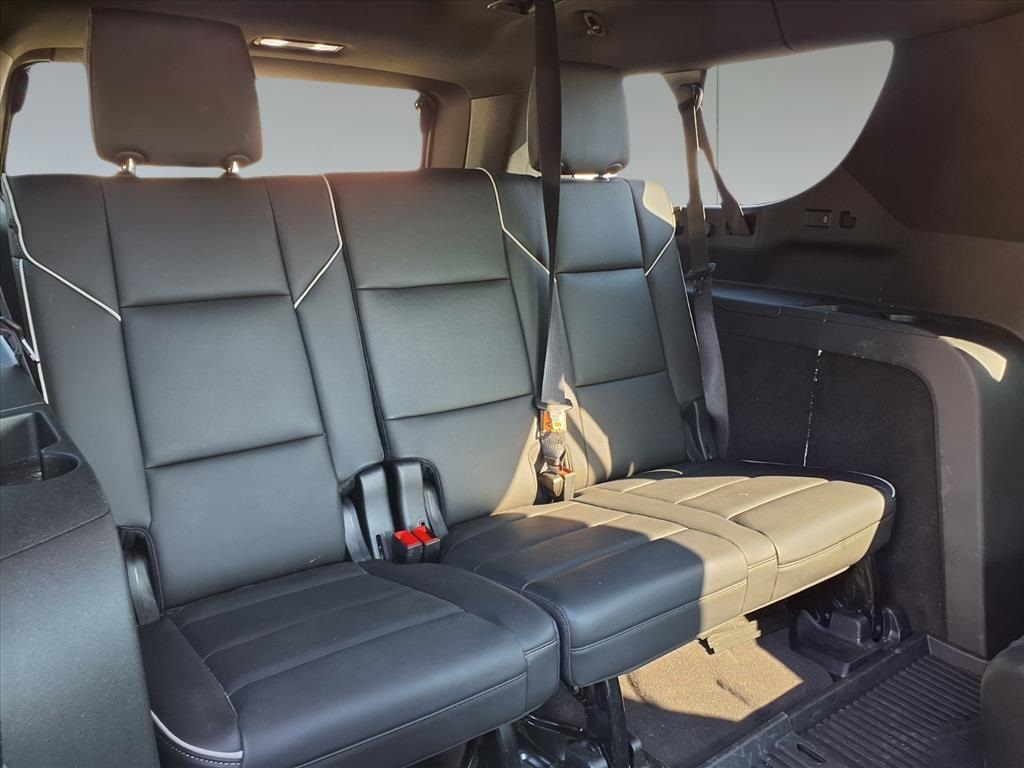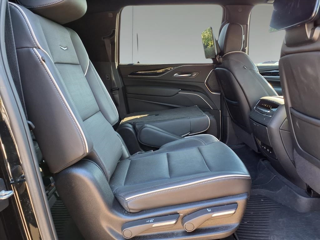 ated Driver & Front Passenger Seats, Hitch Guidance w/Hitch View, Integrated Trailer Brake Controller, Power Panoramic Tilt-Sliding Sunroof, Rear Camera Mirror, Rear Camera Mirror Washer, Rear Cross Traffic Alert, Reconfigurable Full-Color Head-Up Display, Reverse Automatic Braking, Running Board Assist Steps, Smart Trailer Integration Indicator, Theft-Deterrent Alarm System, Trailer Side Blind Zone Alert, Vehicle Inclination Sensor, and Vehicle Interior Movement Sensor), Touring Package (Air Ride Adaptive Suspension, Illuminating Front & Rear Sill Plates, and Soft Closing Front & Rear Doors), Cadillac Certified Pre-Owned Certified, AWD, 16.9" Diagonal OLED Infotainment Screen, 19 Speakers, 2-Presets Memory For Driver Seat Adjuster, 3.23 Axle Ratio, 3rd row seats: split-bench, 4-Way Power Driver Lumbar Seat Adjuster, 4-Way Power Front Passenger Lumbar Seat Adjuster, 4-Wheel Disc Brakes, 8-Way Power Driver Seat Adjuster, 8-Way Power Front Passenger Seat Adjuster, ABS brakes, Adaptive suspension, Air Conditioning, Alloy wheels, AM/FM radio: SiriusXM with 360L, Apple CarPlay/Android Auto, Audio memory, Auto High-beam Headlights, Auto tilt-away steering wheel, Auto-dimming door mirrors, Automatic temperature control, Brake assist, Bumpers: body-color, Compass, Delay-off headlights, Driver door bin, Driver vanity mirror, Dual front impact airbags, Dual front side impact airbags, Electronic Stability Control, Emergency communication system: OnStar and Cadillac connected services capable, Exterior Parking Camera Rear, Four wheel independent suspension, Front anti-roll bar, Front Bucket Seats, Front Center Armrest w/Storage, Front dual zone A/C, Front License Plate Bracket, Front reading lights, Fully automatic headlights, Garage door transmitter, HD Radio, Heads-Up Display, Heated door mirrors, Heated Driver & Front Passenger Seats, Heated front seats, Heated rear seats, Heated steering wheel, Illuminated entry, Leather Seating Surfaces w/Precision Perf Inserts, Low tire pressure warning, Magnetic Ride Control Suspension, Memory seat, Navigation System, Occupant sensing airbag, Outside temperature display, Overhead airbag, Overhead console, Panic alarm, Passenger door bin, Passenger vanity mirror, Power door mirrors, Power driver seat, Power Liftgate, Power moonroof, Power passenger seat, Power steering, Power windows, Power-Retractable Assist Steps, Radio data system, Radio: AM/FM w/Navigation, Rain sensing wipers, Rear air conditioning, Rear anti-roll bar, Rear reading lights, Rear Seat Entertainment System, Rear window defroster, Rear window wiper, Remote keyless entry, Security system, SiriusXM w/360L, Speed control, Split folding rear seat, Spoiler, Steering wheel memory, Steering wheel mounted audio controls, Tachometer, Teen Driver, Telescoping steering wheel, Tilt steering wheel, Traction control, Trip computer, Turn signal indicator mirrors, Variably intermittent wipers, Ventilated front seats, Voltmeter, Wheel Locks, Wheels: 22" 12-Spoke Polished Alloy, and Wireless Apple CarPlay/Wireless Android Auto. Recent Arrival!