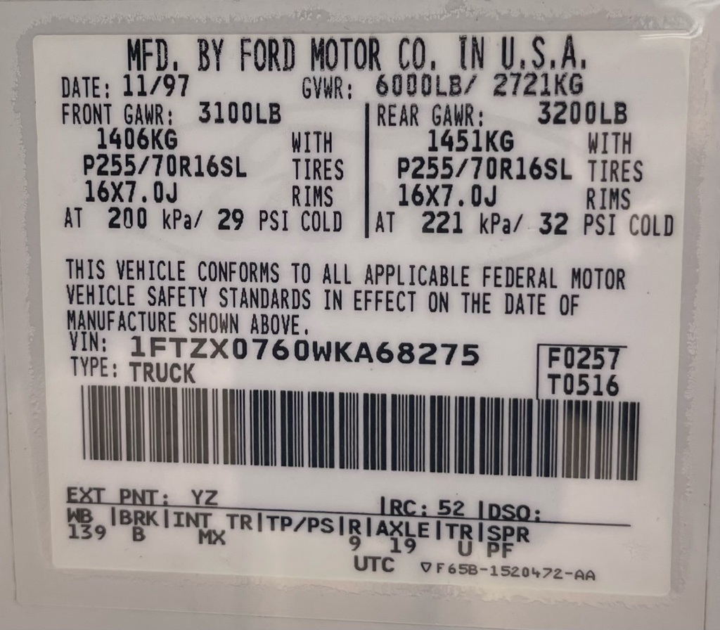 1998 Ford F-150 White RWD 4-Speed Automatic with Overdrive 4.6L V8 EFI
