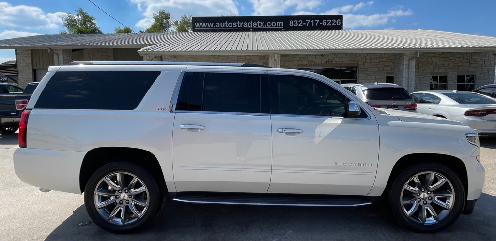 AUTOSTRADE is proud to present you with another True Market Priced Pre-Owned Vehicle. This 2015 Chevrolet Suburban LTZ is loaded with the following Factory Options:License Plate Front Mounting Package, Magnetic Ride Control Suspension Package, Max Trailering Package (Integrated Trailer Brake Controller), Preferred Equipment Group 1LZ (3rd Row 60/40 Power Fold Split-Bench, Auto-Dimming Inside Rear-View Mirror, Color-Keyed Heated Leather-Wrapped Steering Wheel, Driver & Front Passenger Airbags, Floor Console w/Storage Area, Fog Lamps, Forward Collision Alert Sensor Indicator, Front & Rear Parking Assist, Hands Free Power Liftgate, Heated 2nd Row Seats, Heavy-Duty Locking Rear Differential (DISC), Keyless Start Switch, Lane Departure Warning & Safety Alert Seat, Memory Settings, Passive Entry System, Power Folding & Adjustable Heated Outside Mirrors, Power Release 2nd Row Bucket Seats, Power Tilt & Telescoping Steering Column, Power-Adjustable Accelerator & Brake Pedals, Rear Cross-Traffic Alert Sensor Indicator, Side Blind Zone Alert w/Lane Change Alert, Universal Home Remote, and Wireless Charging), Sun, Entertainment & Destinations Package (3rd Row DVD Screen, Power Tilt-Sliding Sunroof w/Express-Open/Close, and Rear Seat Entertainment System), 10 Speakers, 3rd row seats: split-bench, 4-Wheel Disc Brakes, ABS brakes, Adaptive suspension, Adjustable pedals, Air Conditioning, Alloy wheels, AM/FM radio: SiriusXM, Auto-dimming door mirrors, Auto-dimming Rear-View mirror, Automatic temperature control, Bodyside moldings, Bose Centerpoint Surround Sound 10-Speaker System, Brake assist, Bumpers: body-color, CD player, Compass, Delay-off headlights, Driver door bin, Driver vanity mirror, Dual front impact airbags, Dual front side impact airbags, Electronic Stability Control, Emergency communication system: OnStar Directions & Connections, Exterior Parking Camera Rear, Front anti-roll bar, Front Bucket Seats, Front Center Armrest, Front dual zone A/C, Front fog lights, Front reading lights, Front Reclining Bucket Seats, Front wheel independent suspension, Fully automatic headlights, Garage door transmitter, Headphones, Heated & Cooled Driver & Front Passenger Seats, Heated door mirrors, Heated front seats, Heated rear seats, Heated steering wheel, High-Intensity Discharge Headlights, Illuminated entry, Leather Shift Knob, Low tire pressure warning, Memory seat, Navigation System, Occupant sensing airbag, OnStar w/4G LTE, Outside temperature display, Overhead airbag, Overhead console, Panic alarm, Passenger door bin, Passenger vanity mirror, Pedal memory, Perforated Leather-Appointed Seat Trim, Polished Exhaust Tips, Power door mirrors, Power driver seat, Power Liftgate, Power passenger seat, Power steering, Power windows, Radio: Chevrolet MyLink w/Navigation/AM/FM Stereo, Rain sensing wipers, Rear air conditioning, Rear anti-roll bar, Rear audio controls, Rear reading lights, Rear window defroster, Rear window wiper, Remote keyless entry, Roof rack: rails only, Security system, Single-Slot CD/MP3 Player, SiriusXM Satellite & HD Radio, Speed control, Speed-sensing steering, Split f