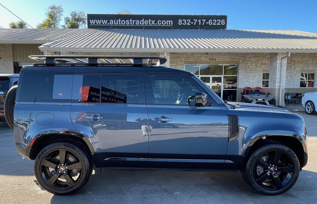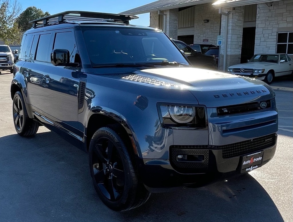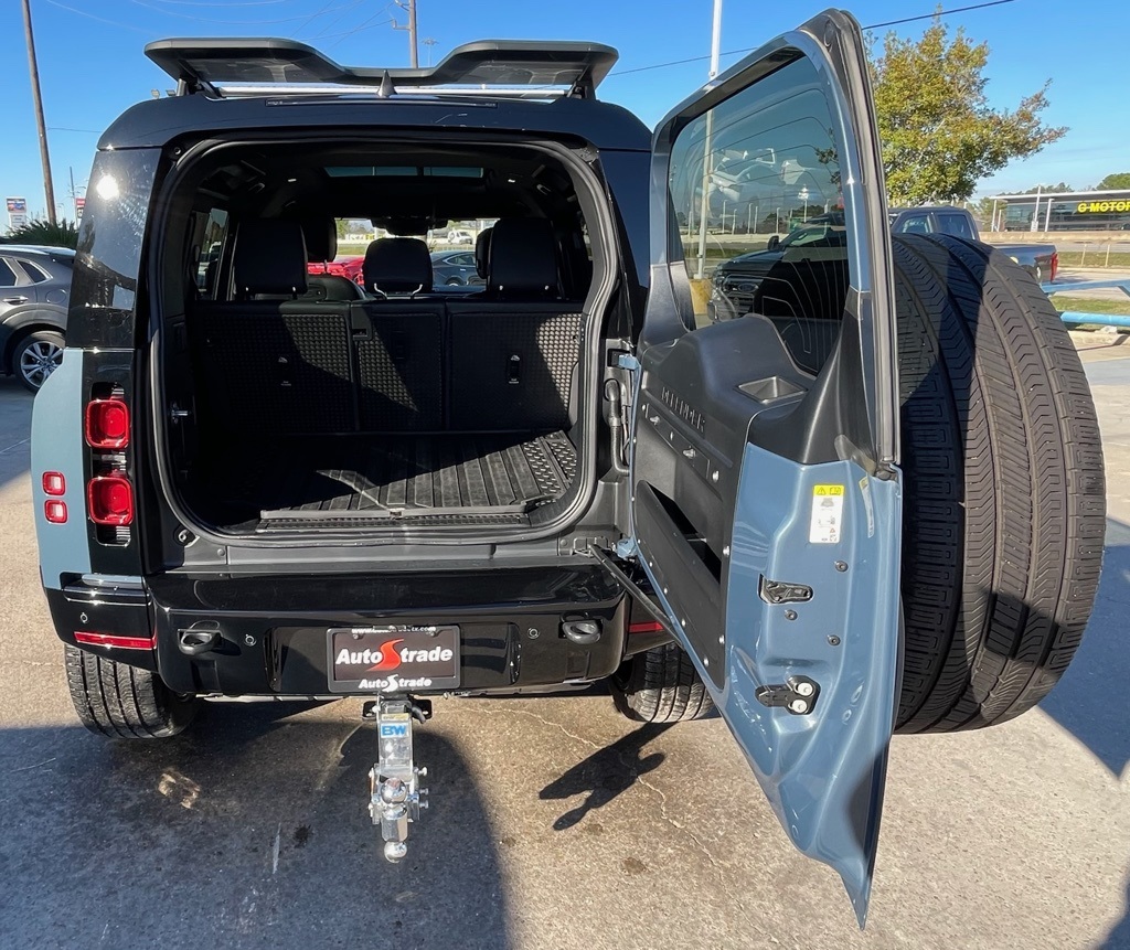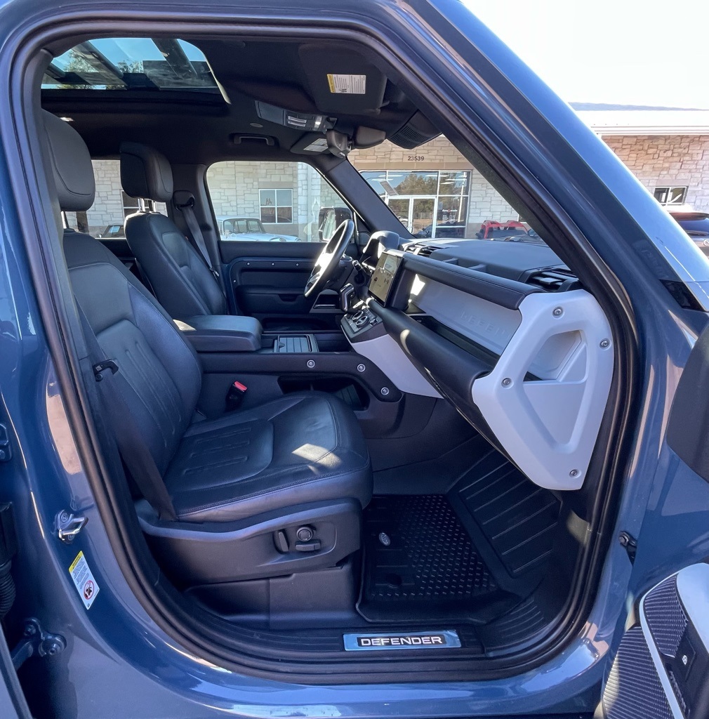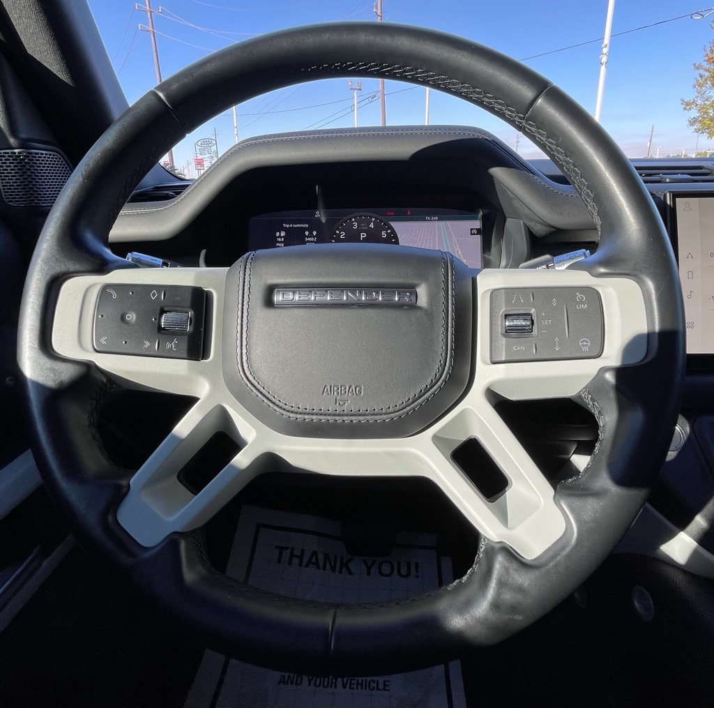 AUTOSTRADE is proud to present you with another True Market Priced Pre-Owned Vehicle. This 2022 Land Rover Defender 110 X-Dynamic HSE is loaded with the following Factory Options:14-Way Heated & Cooled Electric Memory Seats, 15 Speakers, 3.55 Axle Ratio, 4-Wheel Disc Brakes, ABS brakes, Air Conditioning, Alloy wheels, AM/FM radio: SiriusXM, Apple CarPlay & Android Auto, Auto High-beam Headlights, Auto tilt-away steering wheel, Auto-dimming door mirrors, Auto-dimming Rear-View mirror, Automatic temperature control, Brake assist, Bumpers: body-color, Compass, Delay-off headlights, Driver door bin, Driver vanity mirror, Dual front impact airbags, Dual front side impact airbags, Electronic Stability Control, Four wheel independent suspension, Front anti-roll bar, Front Bucket Seats, Front Center Armrest, Front dual zone A/C, Front fog lights, Front reading lights, Fully automatic headlights, Garage door transmitter: HomeLink, Heated door mirrors, Heated front seats, Illuminated entry, Leather Shift Knob, Leather steering wheel, Low tire pressure warning, Memory seat, Navigation system: Connected Navigation PIVI Pro, Occupant sensing airbag, Outside temperature display, Overhead airbag, Overhead console, Panic alarm, Passenger door bin, Passenger vanity mirror, Power door mirrors, Power driver seat, Power moonroof, Power passenger seat, Power steering, Power windows, Radio data system, Radio: 825W 15 Speaker Meridian Surround Sound Sys, Rain sensing wipers, Rear anti-roll bar, Rear fog lights, Rear reading lights, Rear seat center armrest, Rear window defroster, Rear window wiper, Remote keyless entry, Roof rack: rails only, Security system, Speed control, Speed-sensing steering, Speed-Sensitive Wipers, Split folding rear seat, Steering wheel memory, Steering wheel mounted audio controls, Tachometer, Telescoping steering wheel, Tilt steering wheel, Traction control, Trip computer, Variably intermittent wipers, Ventilated front seats, Weather band radio, Wheels: 20" Satin Dark Gray Finish Style 5098, and Windsor Leather Seat Trim.
