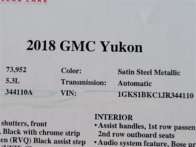 Big Star Chrysler Jeep Dodge Ram Fiat is pleased to offer this stunning 2018 GMC Yukon. SLT RWD Satin Steel Metallic